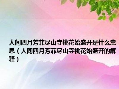 人间四月芳菲尽山寺桃花始盛开是什么意思(人间四月芳菲尽山寺桃花始盛开的解释)
