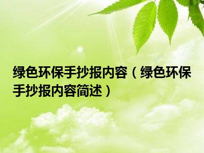 绿色环保手抄报内容(绿色环保手抄报内容简述)