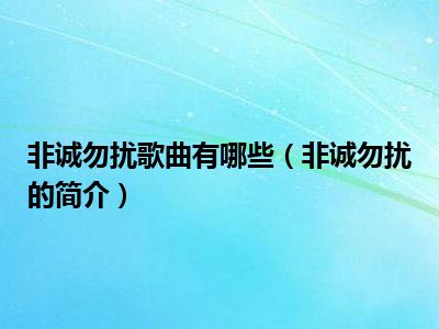 欢迎观看本篇文章,小升来为大家解答以上问题。非诚勿扰歌曲有哪些,非诚勿扰的简介很多人还不知道,现在让我们一起来看看吧!