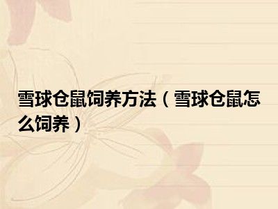 雪球仓鼠饲养方法(雪球仓鼠怎么饲养)