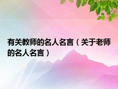 欢迎观看本篇文章,小升来为大家解答以上问题。有关教师的名人名言,关于老师的名人名言很多人还不知道,现在让我们一起来看看吧!
