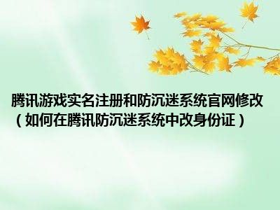 腾讯游戏实名注册和防沉迷系统官网修改(如何在腾讯防沉迷系统中改身份证)
