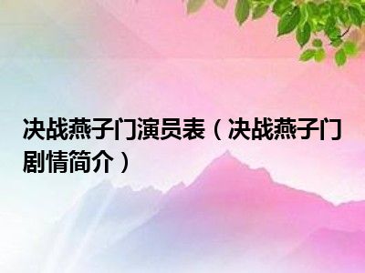 欢迎观看本篇文章,小升来为大家解答以上问题。决战燕子门演员表,决战燕子门剧情简介很多人还不知道,现在让我们一起来看看吧!