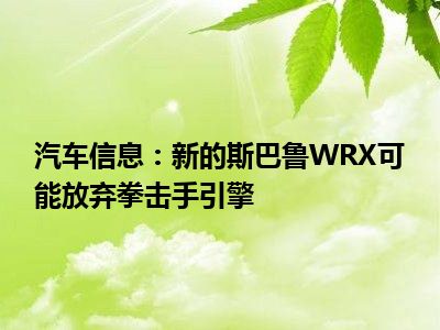 汽车信息:新的斯巴鲁WRX可能放弃拳击手引擎