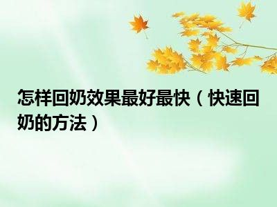 怎样回奶效果最好最快(快速回奶的方法)