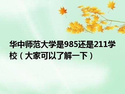 欢迎观看本篇文章,小升来为大家解答以上问题。华中师范大学是985还是211学校,大家可以了解一下很多人还不知道,现在让我们一起来看看吧!