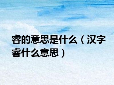 欢迎观看本篇文章,小升来为大家解答以上问题。睿的意思是什么,汉字睿什么意思很多人还不知道,现在让我们一起来看看吧!