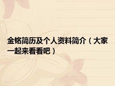 欢迎观看本篇文章,小升来为大家解答以上问题。金铭简历及个人资料简介,大家一起来看看吧很多人还不知道,现在让我们一起来看看吧!