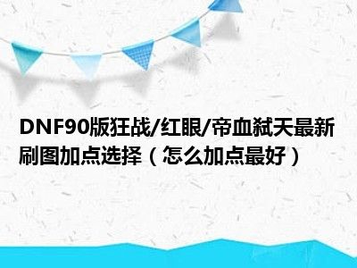 欢迎观看本篇文章,小升来为大家解答以上问题。DNF90版狂战/红眼/帝血弑天最新刷图加点选择,怎么加点最好很多人还不知道,现在让我们一起来看看吧!