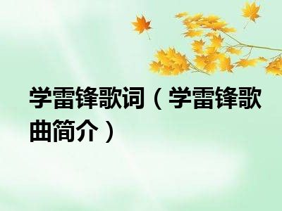 欢迎观看本篇文章,小升来为大家解答以上问题。学雷锋歌词,学雷锋歌曲简介很多人还不知道,现在让我们一起来看看吧!