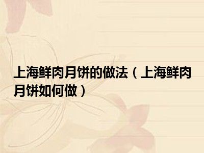 上海鲜肉月饼的做法(上海鲜肉月饼如何做)