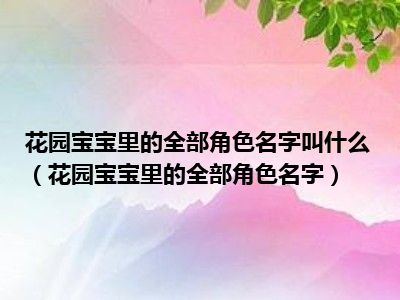 欢迎观看本篇文章,小升来为大家解答以上问题。花园宝宝里的全部角色名字叫什么,花园宝宝里的全部角色名字很多人还不知道,现在让我们一起来看看吧!