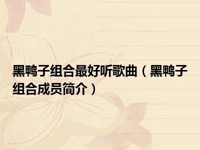 欢迎观看本篇文章,小升来为大家解答以上问题。黑鸭子组合最好听歌曲,黑鸭子组合成员简介很多人还不知道,现在让我们一起来看看吧!