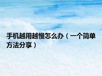 手机越用越慢怎么办(一个简单方法分享)