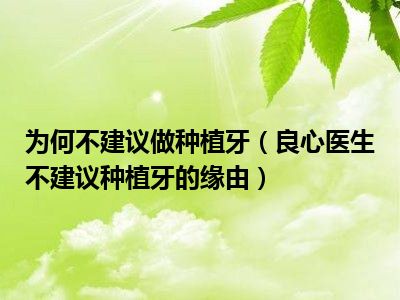 为何不建议做种植牙(良心医生不建议种植牙的缘由)