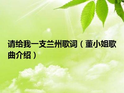 欢迎观看本篇文章,小升来为大家解答以上问题。请给我一支兰州歌词,董小姐歌曲介绍很多人还不知道,现在让我们一起来看看吧!