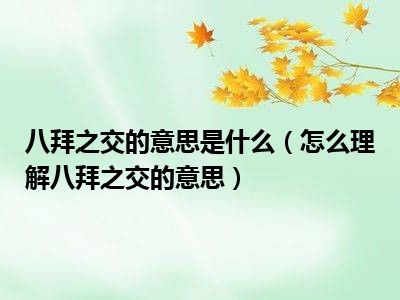 欢迎观看本篇文章,小升来为大家解答以上问题。八拜之交的意思是什么,怎么理解八拜之交的意思很多人还不知道,现在让我们一起来看看吧!