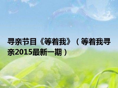 寻亲节目《等着我》(等着我寻亲2015最新一期)