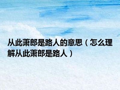 欢迎观看本篇文章,小升来为大家解答以上问题。从此萧郎是路人的意思,怎么理解从此萧郎是路人很多人还不知道,现在让我们一起来看看吧!