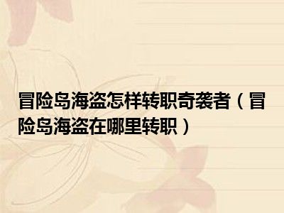 1、 冒险岛海贼如何成为攻略?开始骑士职业很简单,可以转行做掠袭者。