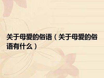 欢迎观看本篇文章,小升来为大家解答以上问题。关于母爱的俗语,关于母爱的俗语有什么很多人还不知道,现在让我们一起来看看吧!