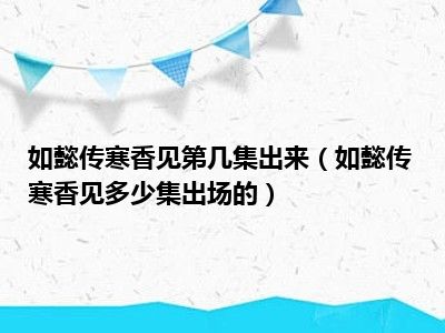 如懿传寒香见第几集出来(如懿传寒香见多少集出场的)