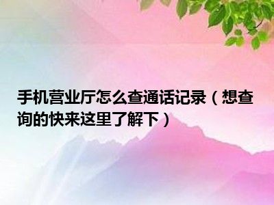 手机营业厅怎么查通话记录(想查询的快来这里了解下)