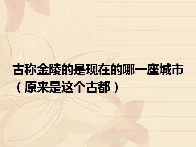 欢迎观看本篇文章,小升来为大家解答以上问题。古称金陵的是现在的哪一座城市,原来是这个古都很多人还不知道,现在让我们一起来看看吧!