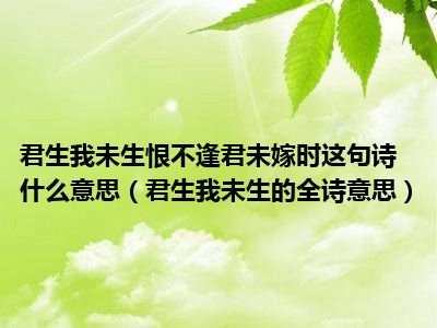 君生我未生恨不逢君未嫁时这句诗什么意思(君生我未生的全诗意思)
