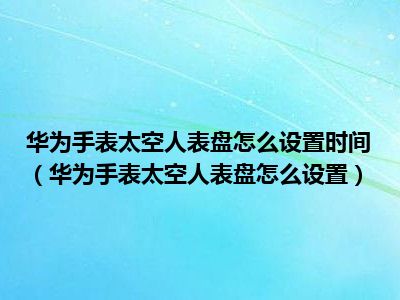 华为手表太空人表盘怎么设置时间(华为手表太空人表盘怎么设置)