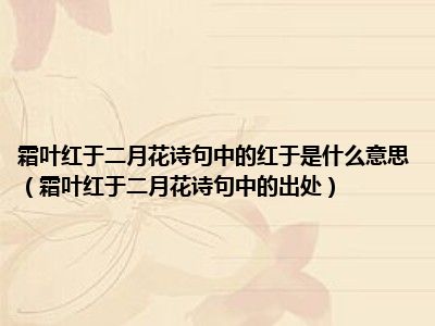 1、 红色意味着比…更红。霜叶二月开花,意味着二月枫叶比春花更红。