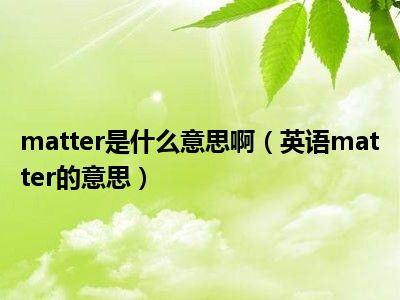欢迎观看本篇文章,小升来为大家解答以上问题。matter是什么意思啊,英语matter的意思很多人还不知道,现在让我们一起来看看吧!