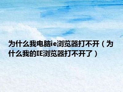 为什么我电脑ie浏览器打不开(为什么我的IE浏览器打不开了)