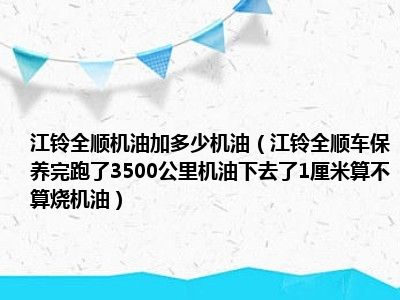 大家好,小牛来为大家解答以上江铃全顺机油加多少机油,江铃全顺车保养完跑了3500公里机油下去了1厘米算不算烧机油的问题,小编也是到网上收集了一些与江铃全顺机油加多少机油,江铃全顺车保养完跑了3500公里机油下去了1厘米算不算烧机油相关的信息,那么下面分享给大家一起了解下吧。