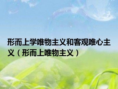 形而上学唯物主义和客观唯心主义(形而上唯物主义)