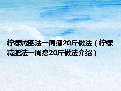 柠檬减肥法一周瘦20斤做法(柠檬减肥法一周瘦20斤做法介绍)