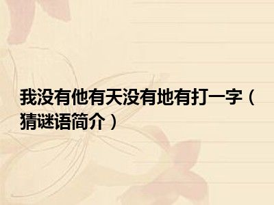 欢迎观看本篇文章,小升来为大家解答以上问题。我没有他有天没有地有打一字,猜谜语简介很多人还不知道,现在让我们一起来看看吧!