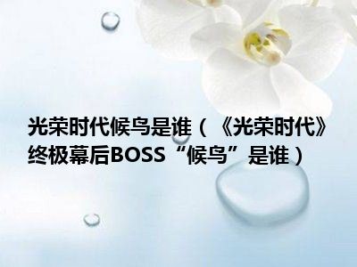 欢迎观看本篇文章,小升来为大家解答以上问题。光荣时代候鸟是谁,《光荣时代》终极幕后BOSS“候鸟”是谁很多人还不知道,现在让我们一起来看看吧!