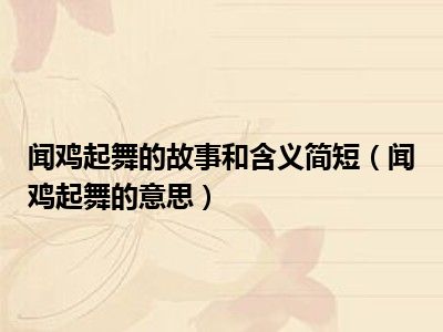 欢迎观看本篇文章,小升来为大家解答以上问题。闻鸡起舞的故事和含义简短,闻鸡起舞的意思很多人还不知道,现在让我们一起来看看吧!