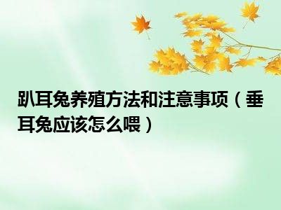 欢迎观看本篇文章,小升来为大家解答以上问题。趴耳兔养殖方法和注意事项,垂耳兔应该怎么喂很多人还不知道,现在让我们一起来看看吧!