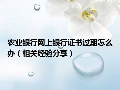 欢迎观看本篇文章,小升来为大家解答以上问题。农业银行网上银行证书过期怎么办,相关经验分享很多人还不知道,现在让我们一起来看看吧!