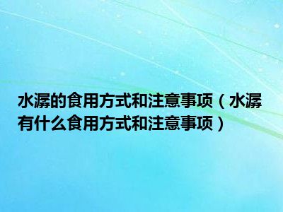 水潺的食用方式和注意事项(水潺有什么食用方式和注意事项)