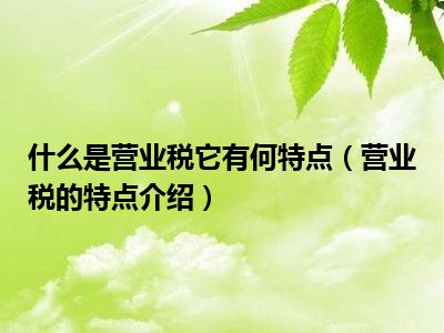 欢迎观看本篇文章,小升来为大家解答以上问题。什么是营业税它有何特点,营业税的特点介绍很多人还不知道,现在让我们一起来看看吧!