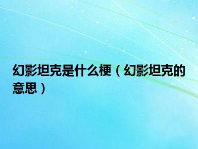 欢迎观看本篇文章,小升来为大家解答以上问题。幻影坦克是什么梗,幻影坦克的意思很多人还不知道,现在让我们一起来看看吧!