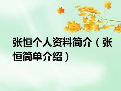欢迎观看本篇文章,小升来为大家解答以上问题。张恒个人资料简介,张恒简单介绍很多人还不知道,现在让我们一起来看看吧!