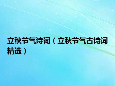 欢迎观看本篇文章,小升来为大家解答以上问题。立秋节气诗词,立秋节气古诗词精选很多人还不知道,现在让我们一起来看看吧!
