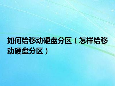 如何给移动硬盘分区(怎样给移动硬盘分区)