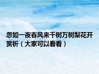 忽如一夜春风来千树万树梨花开赏析(大家可以看看)
