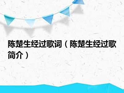 欢迎观看本篇文章,小升来为大家解答以上问题。陈楚生经过歌词,陈楚生经过歌简介很多人还不知道,现在让我们一起来看看吧!