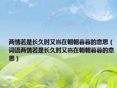 两情若是长久时又岂在朝朝暮暮的意思(词语两情若是长久时又岂在朝朝暮暮的意思)